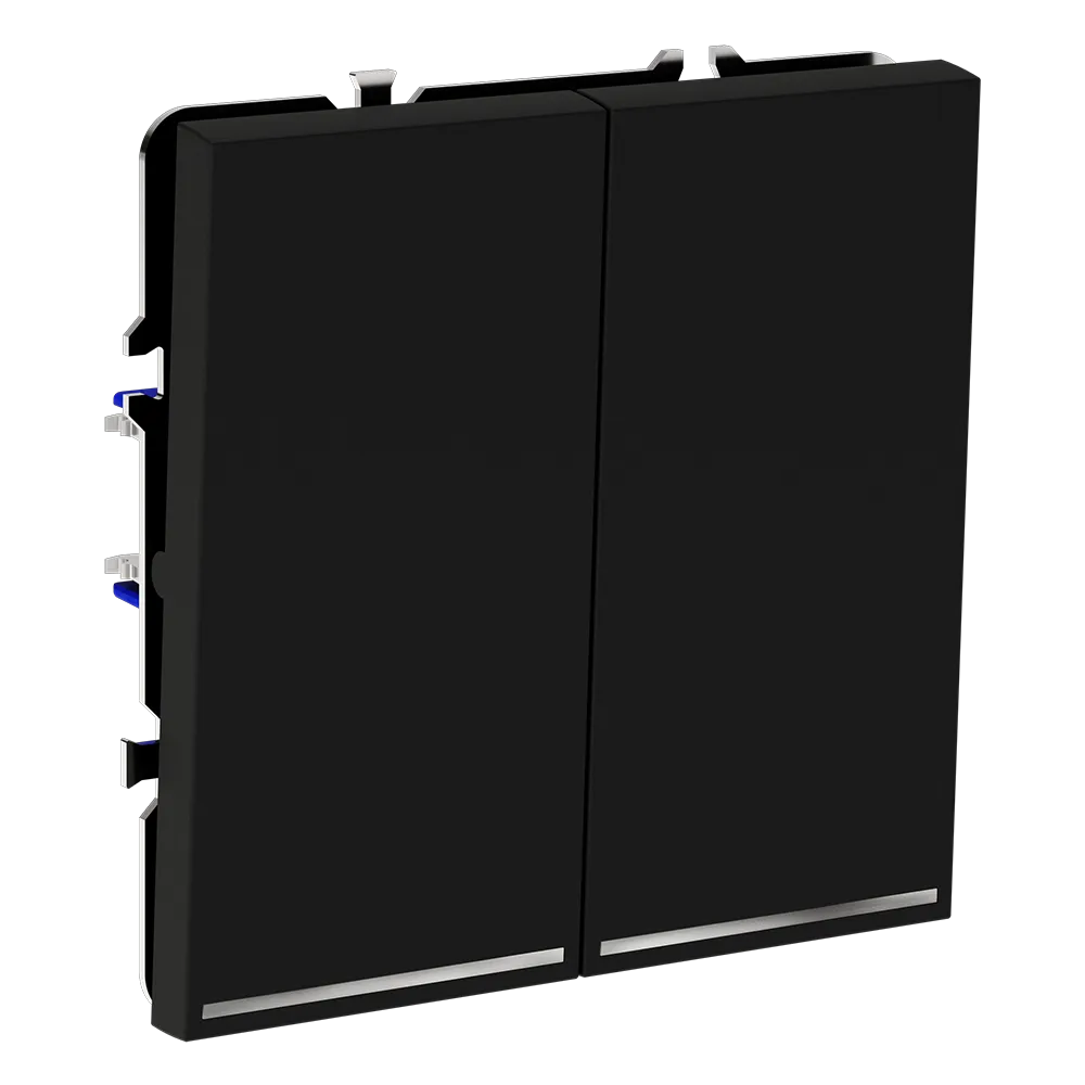 Выключатель встраиваемый VOLTUM S70 двухклавишный с подсветкой 10А (черный матовый)